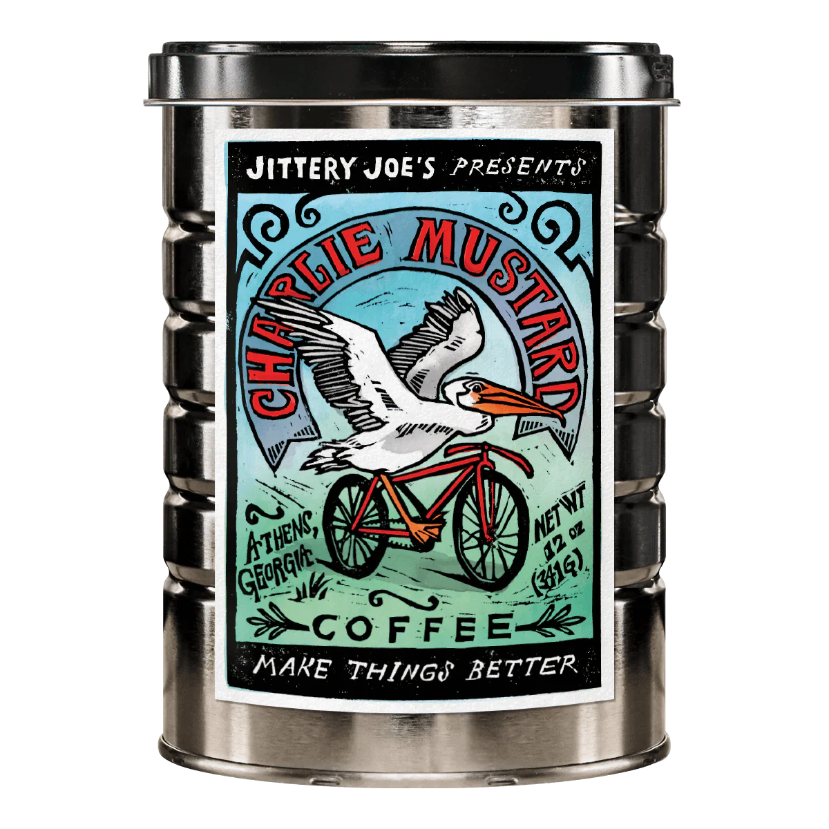 Roasted and canned by Jittery Joe's in Athens, Georgia.