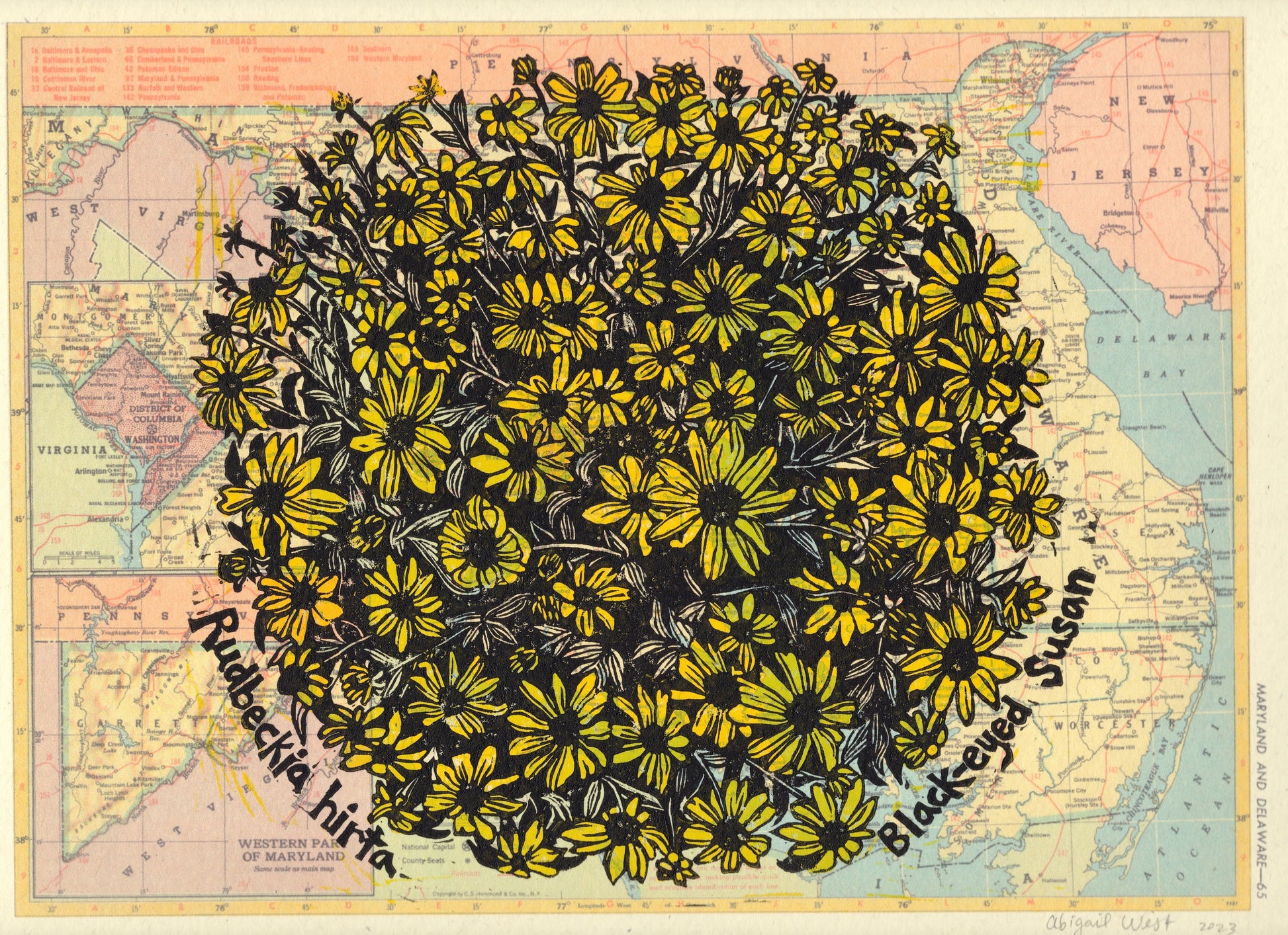 Maryland State Flower: Black-eyed Susan printed on vintage map