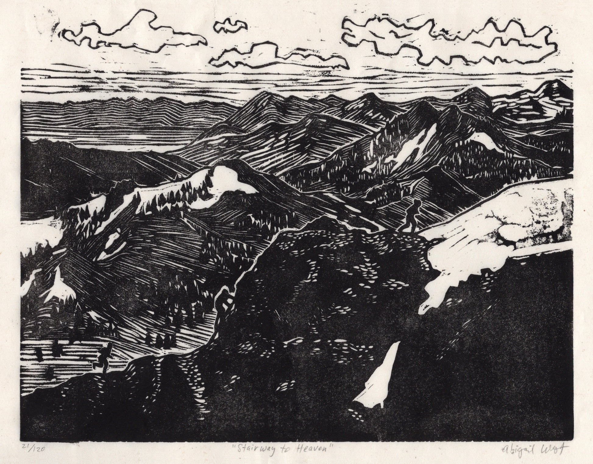 "Stairway to Heaven" Linocut Print - in collaboration with the Broken Arrow Skyrace